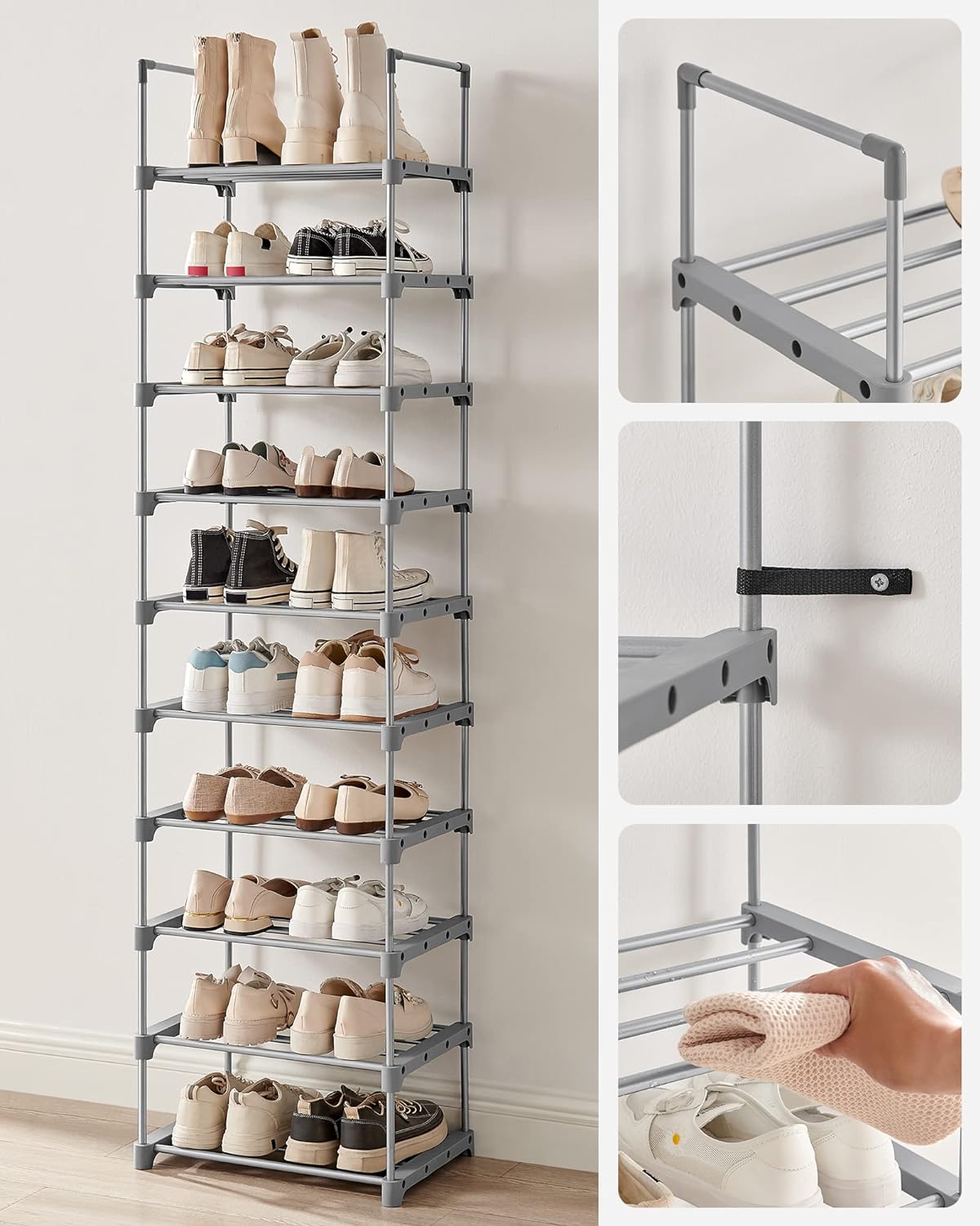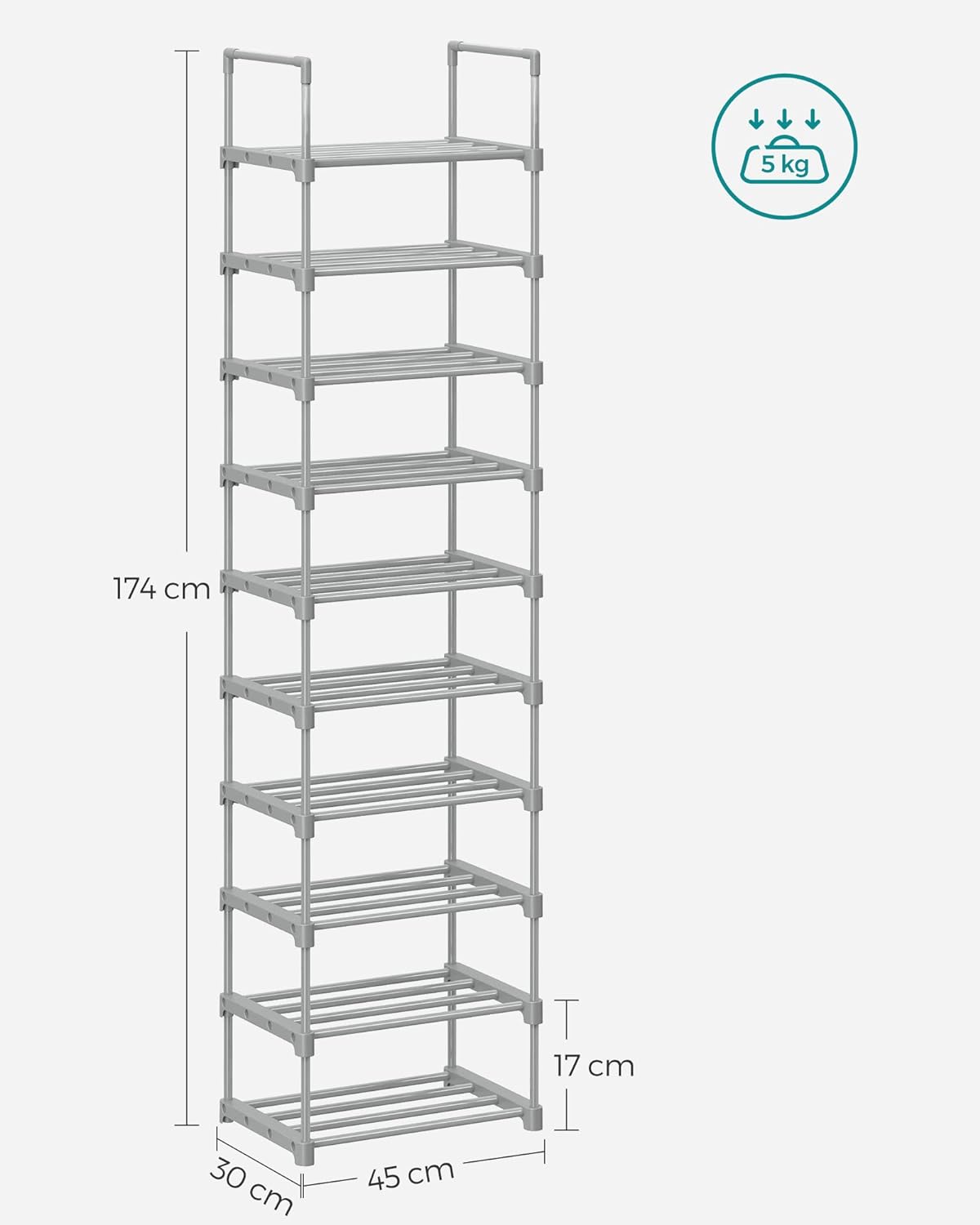 SONGMICS Suport pentru pantofi, cadru metalic cu 10 nivele, design personalizabil, 30x45x174cm, gri Household NewTrend
