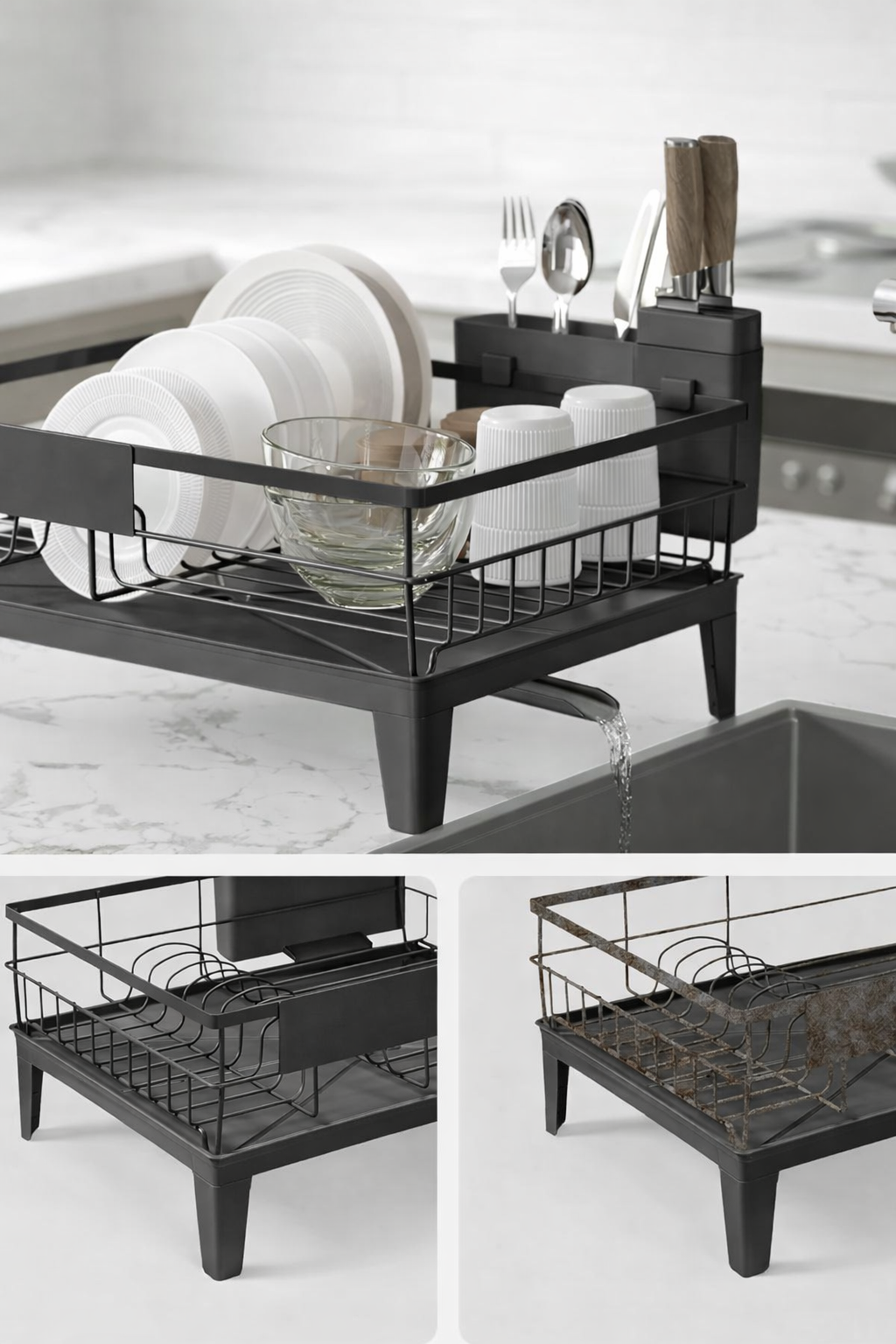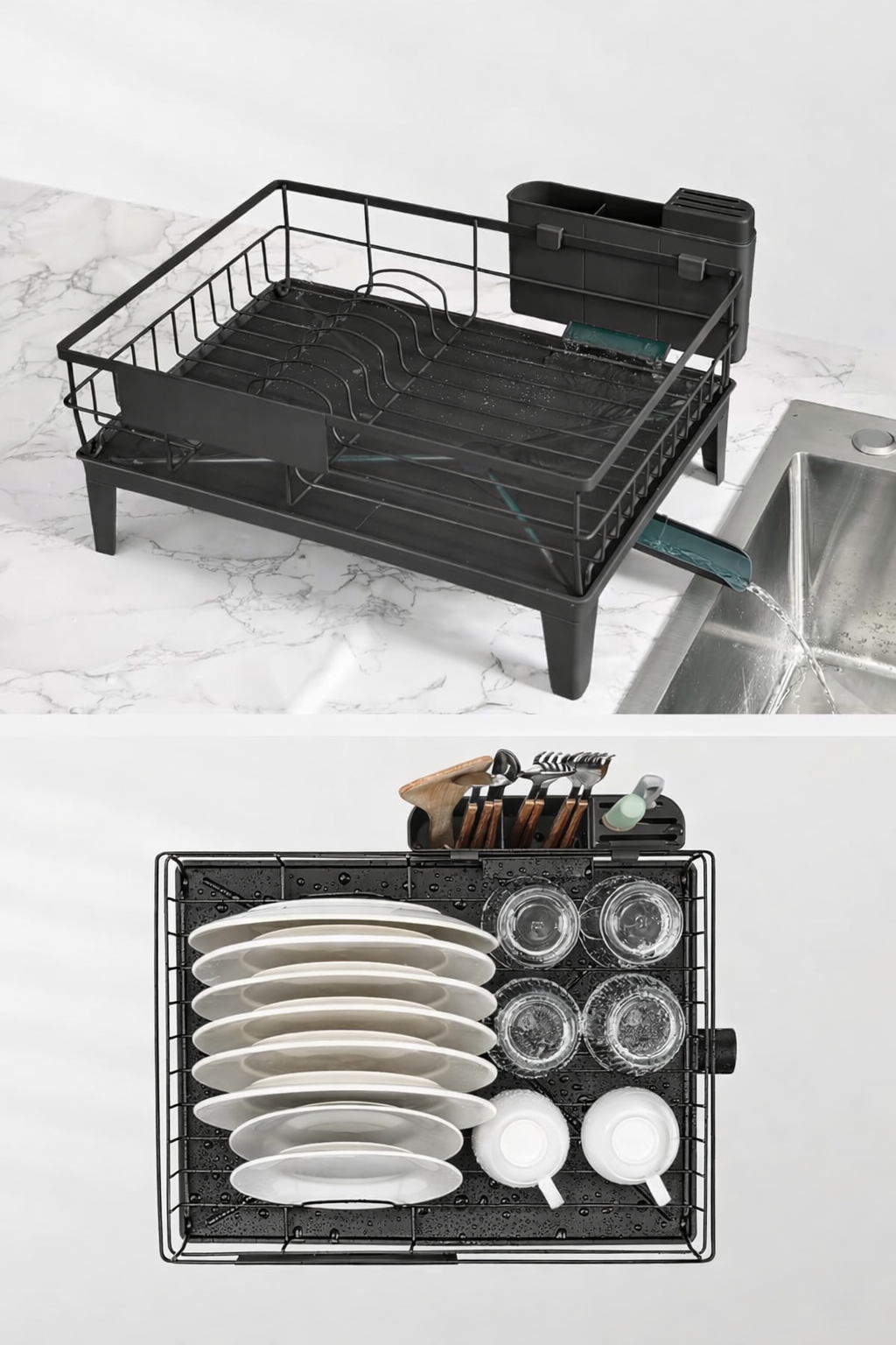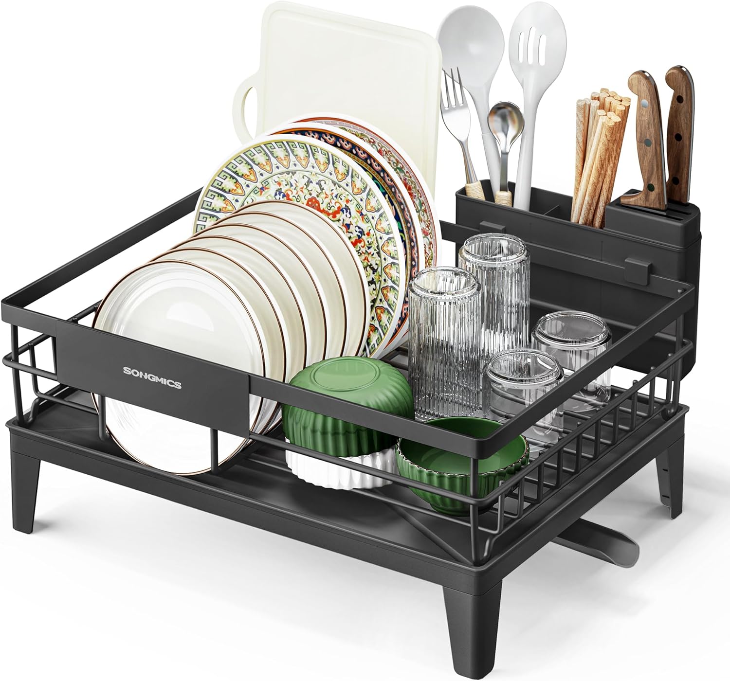 SONGMICS Suport vase metalic, cu tava si scurgere mobila direct in chiuveta, 31x42x19 cm, negru Household NewTrend