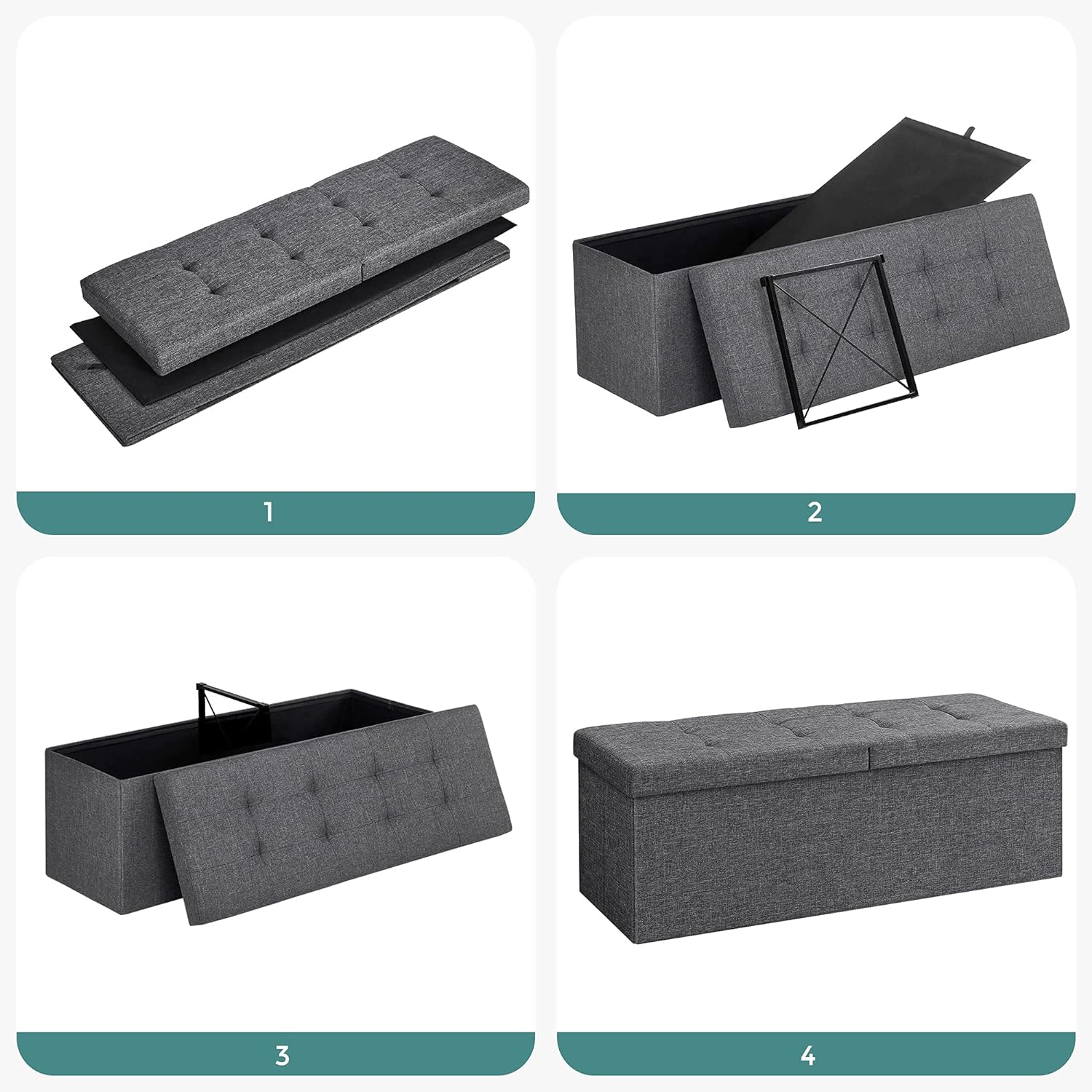 SONGMICS Taburet pliabil cu sezut moale, spatiu de depozitare 120litri, maxim 300kg, 110x38x38cm, gri Household NewTrend