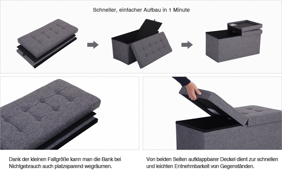 SONGMICS Taburet pliabil cu sezut moale, spatiu de depozitare 80litri, maxim 300kg, 76x38x38cm, gri Household NewTrend