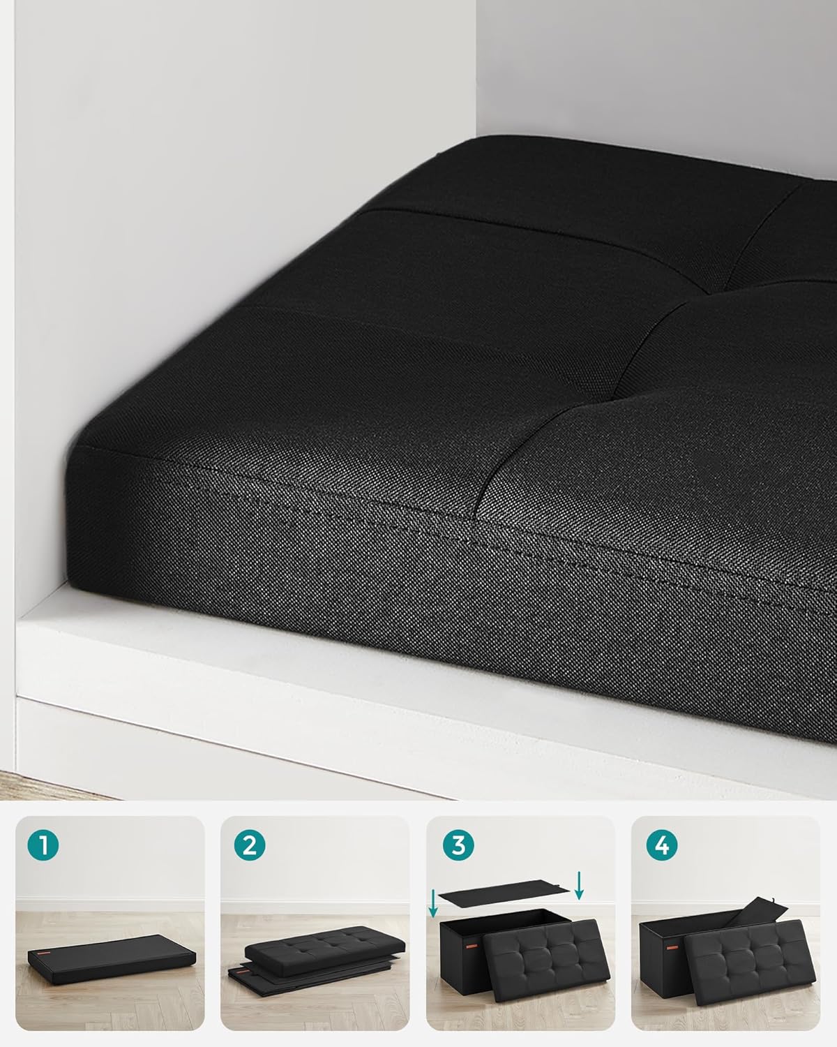 SONGMICS Taburet pliabil cu sezut moale, spatiu de depozitare 89 litri, maxim 300kg, 76x38x38 cm, negru Household NewTrend