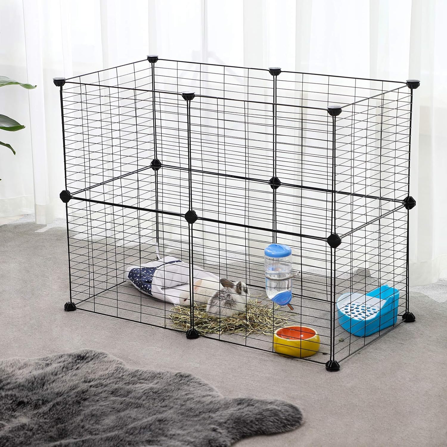 SONGMICS Tarc metalic pentru rozatoare sau alte animale mici, instalare modulara, 143x73x46cm, negru Household NewTrend