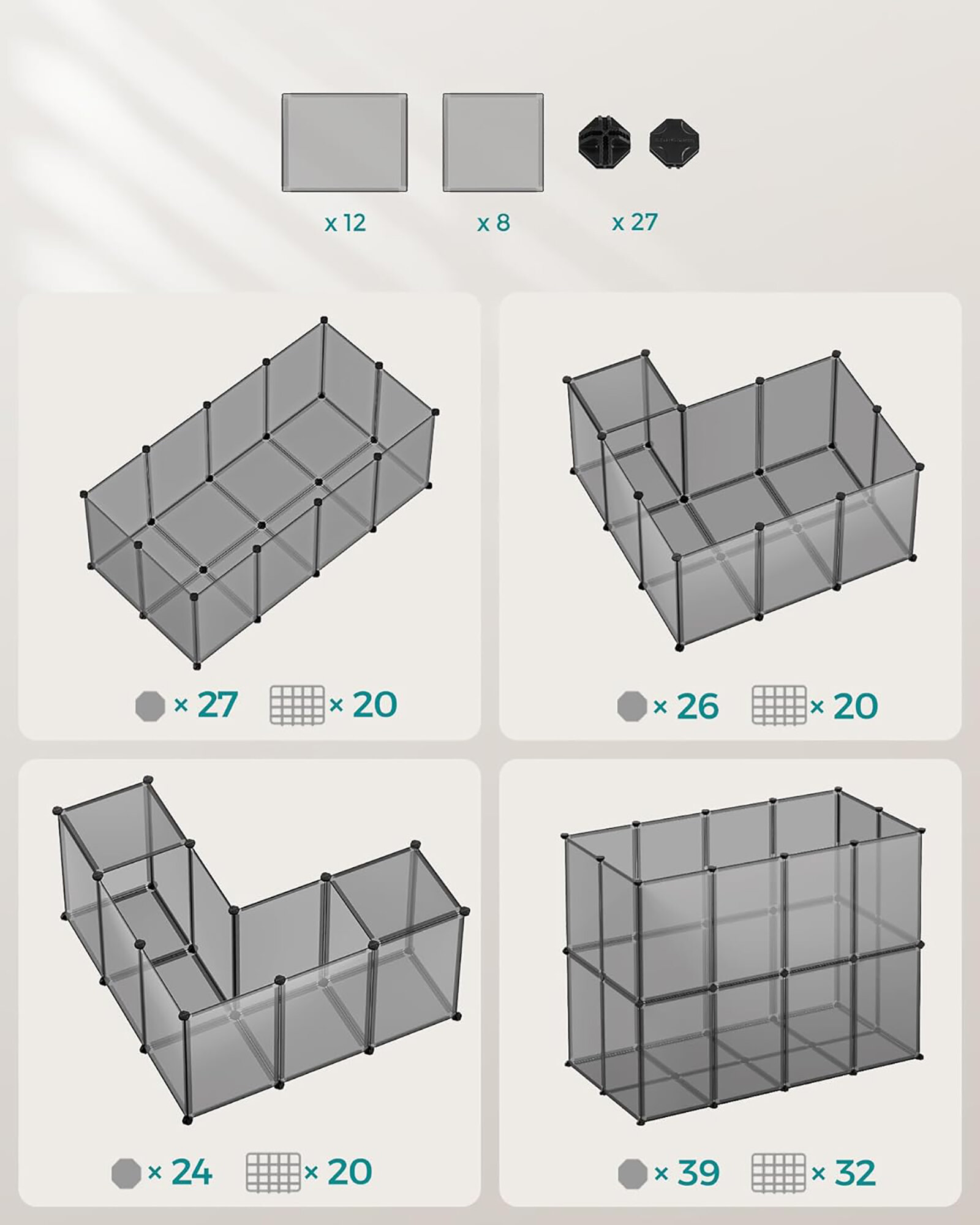 SONGMICS Tarc modular pentru animale mici, ABS, configurabil, 125x63x42 cm, gri Household NewTrend
