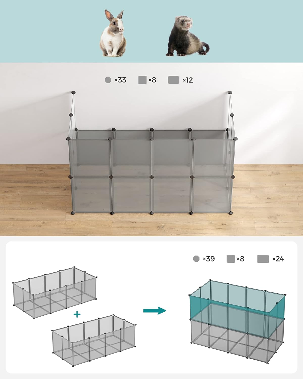 SONGMICS Tarc pentru animale de companie, din plastic, DIY, configurabil, 143x73x46cm, gri Household NewTrend