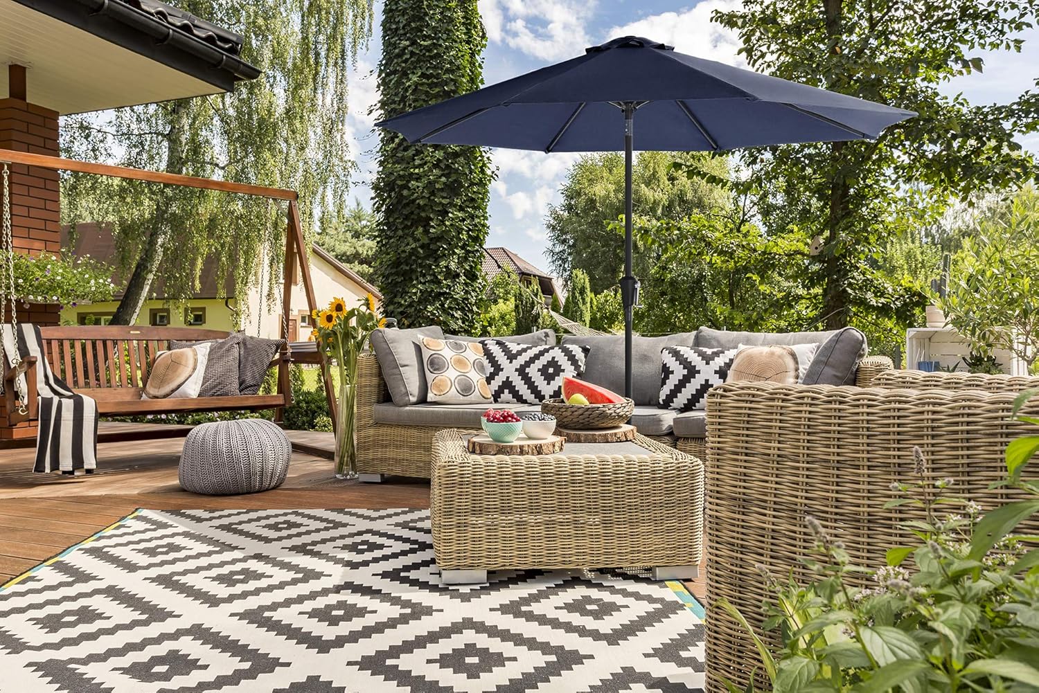 SONGMICS Umbrela de gradina, cu manivela pentru deschidere, sistem inclinare, 300cm, albastru inchis Household NewTrend