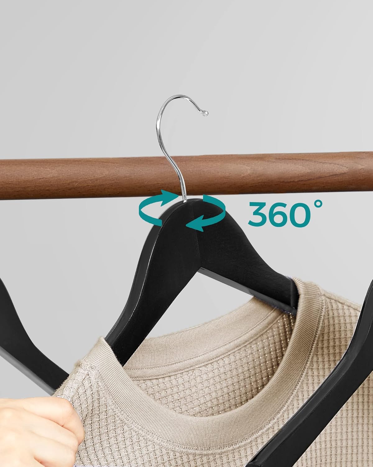 SONGMICS Umerase lemn set 10 bucati, cu bara pantalon antialunecare, carlig rotativ 360°, 45x23 cm, negru Household NewTrend