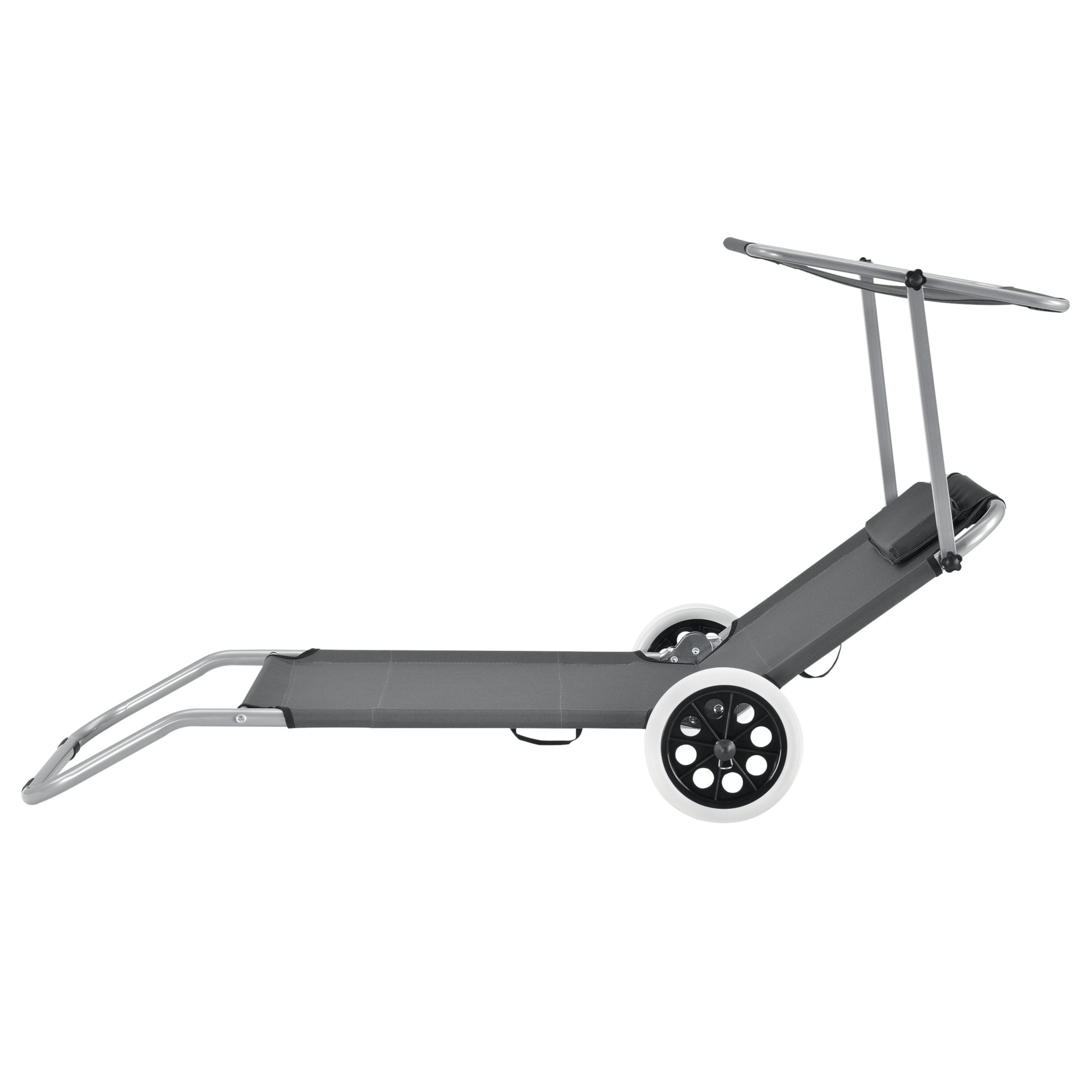 - Rückenlehne und Sonnendach stufenlos verstellbar durch Ratschenrad