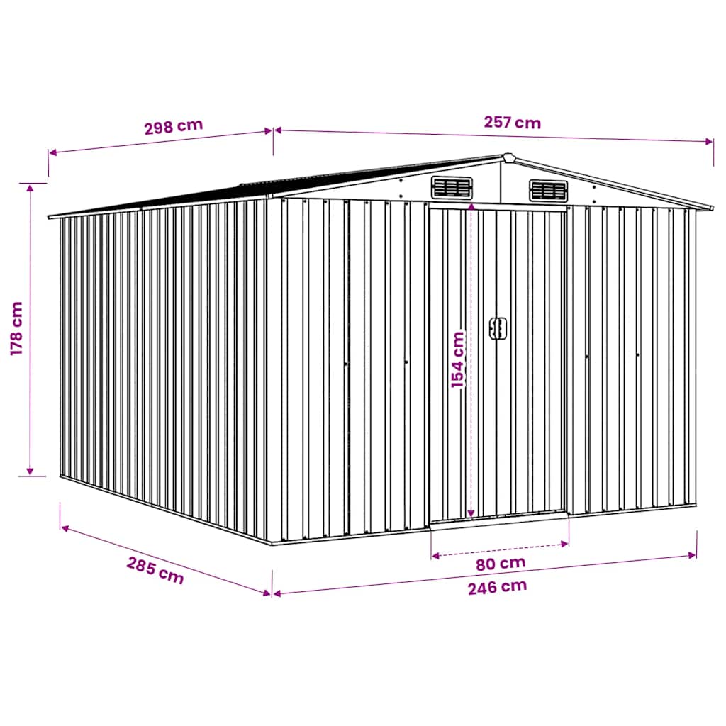 Această magazie metalică va fi perfectă pentru depozitarea unei mari varietăți de unelte, mobilier de grădină și echipamente de grădină. Șopronul de grădină nu oferă doar protecție împotriva murdăriei și prafului, ci și împotriva intemperiilor.