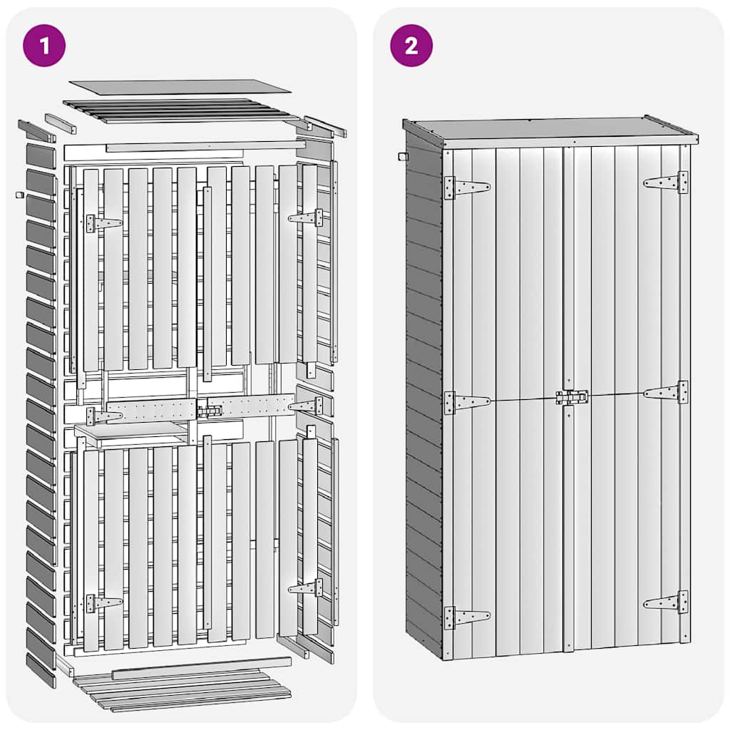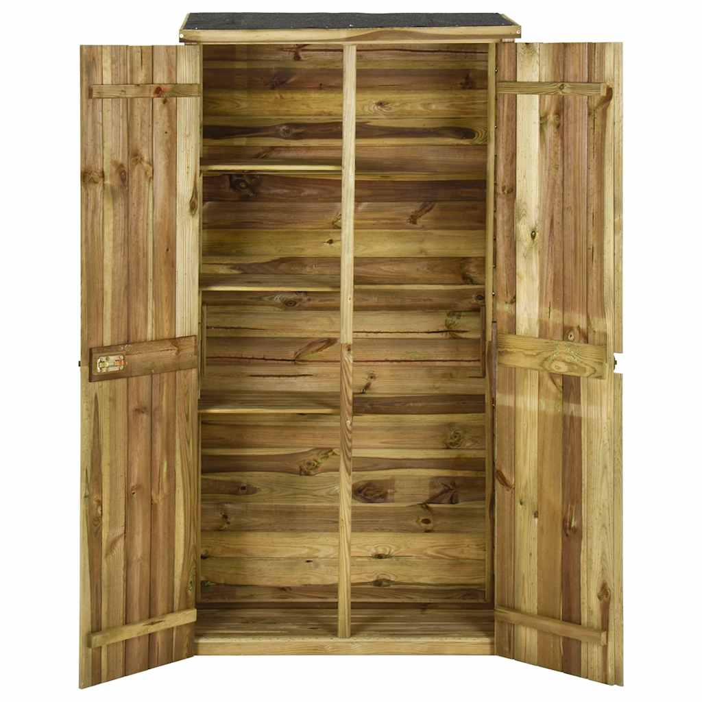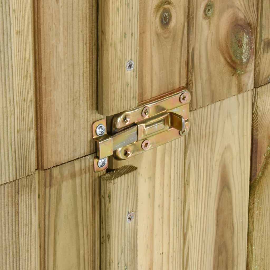 Acest șopron de depozitare pentru exterior este realizat din lemn de pin. Lemnul de pin impregnat este rezistent la uzură și rezistent la intemperii și putrezire. În plus, acoperișul este căptușit cu un strat impermeabil de smoală.