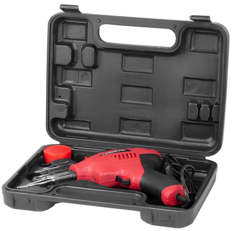 Spájkovacia pištoľ disponuje kompaktnými rozmermi a nízkou hmotnosťou. Je vybavená praktickým LED osvetlením a pogumovanou rukoväťou pre lepšie uchopenie. Teplotu je možné regulovať podľa potreby a vykonávanej činnosti (spájanie/ rezanie plastu 70 – 200° C, mäkké spájkovanie 200 – 350° C, vypaľovanie symbolov na drevo a mäkké spájkovanie 350 – 500° C). Spájkovacia pištoľ a príslušenstvo sú dodávané spolu, v praktickom kufríku.