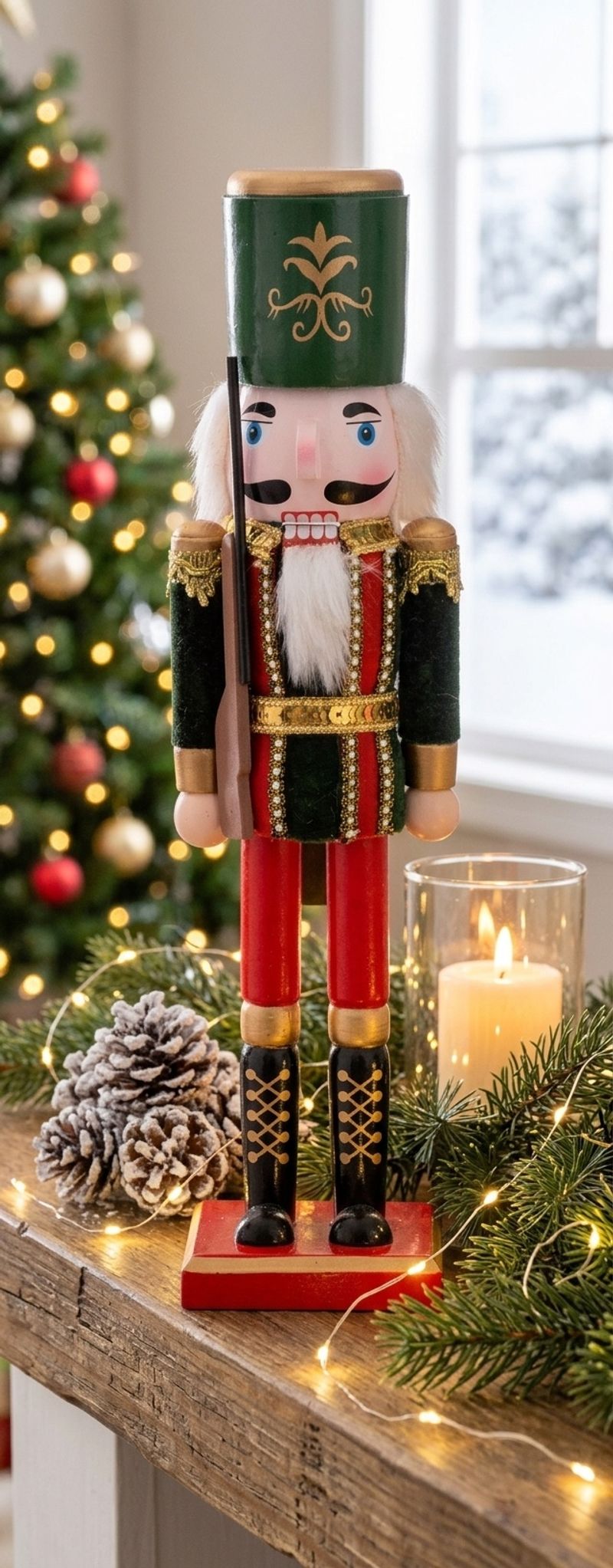 Adaugă un plus de farmec sărbătorilor cu acest spărgător de nuci decorativ din lemn, realizat în stil clasic de Crăciun. Cu o înălțime de 38 cm, barbă lungă, uniformă elegantă și căciulă distinctivă, această decorațiune de Crăciun este ideală pentru a completa atmosfera festivă din living, hol, birou sau vitrină.
