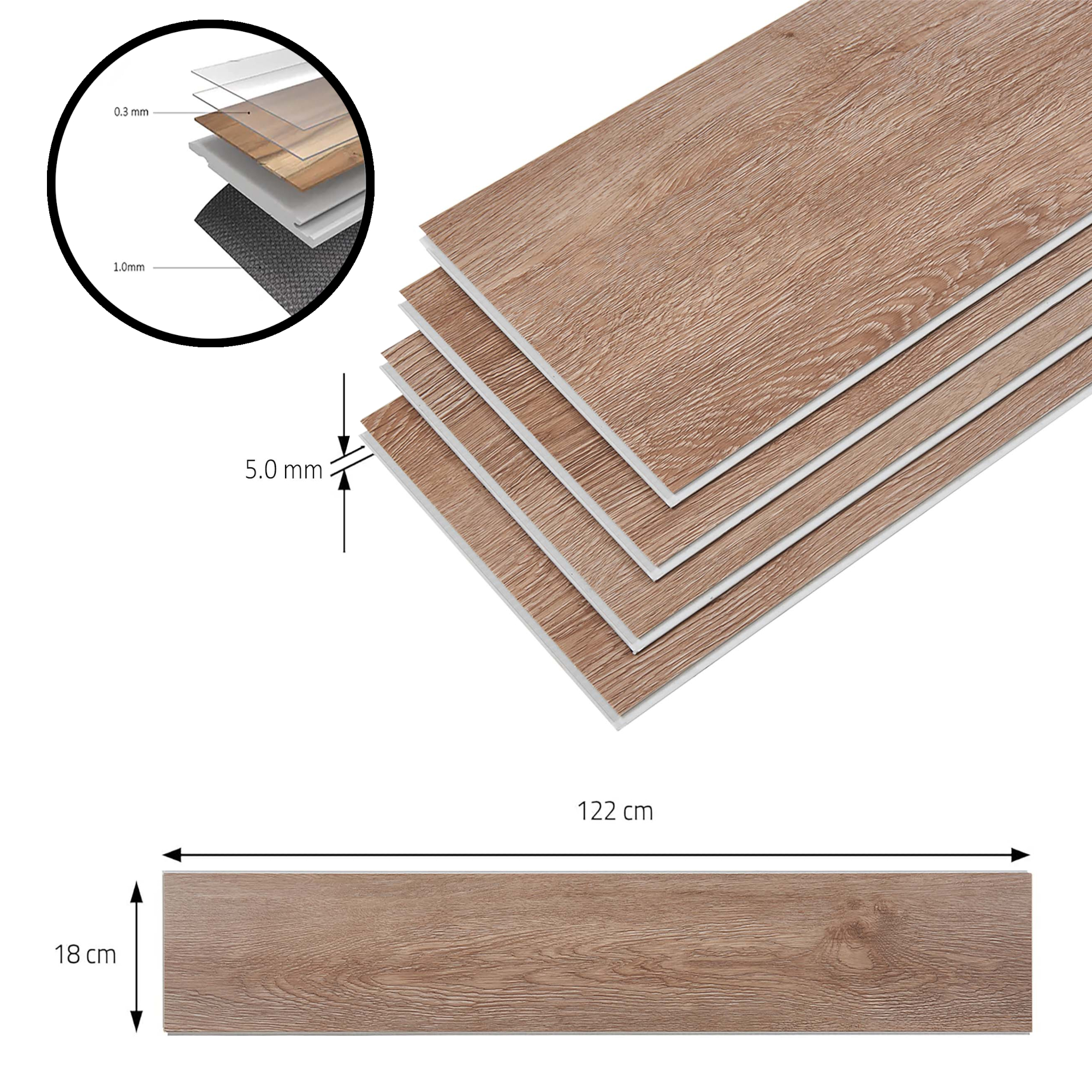 - Gesamtdicke: 5,0 mm