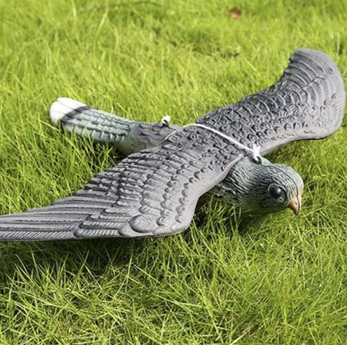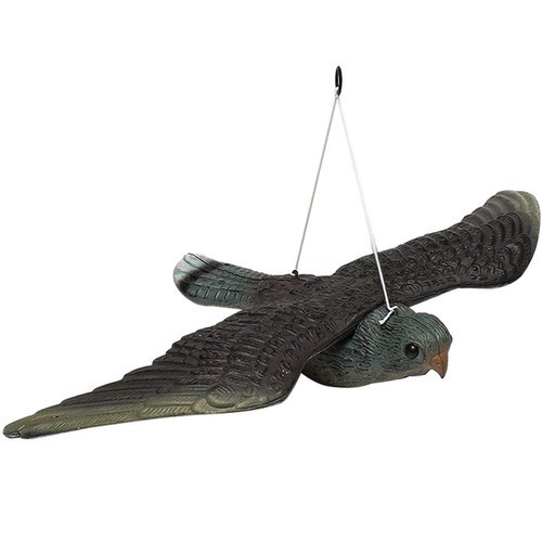 Scapa de problemele cauzate de pasarile nedorite din gradina, livada sau de pe balcon, cu ajutorul sperietorii tip soim, realizata special pentru a imita cat mai fidel un pradator natural. Designul realist cu aripi, cioc si penaj confera figurinei un aspect autentic, capabil sa induca instant senzatia de pericol pentru vrabii, grauri, porumbei si alte pasari daunatoare.