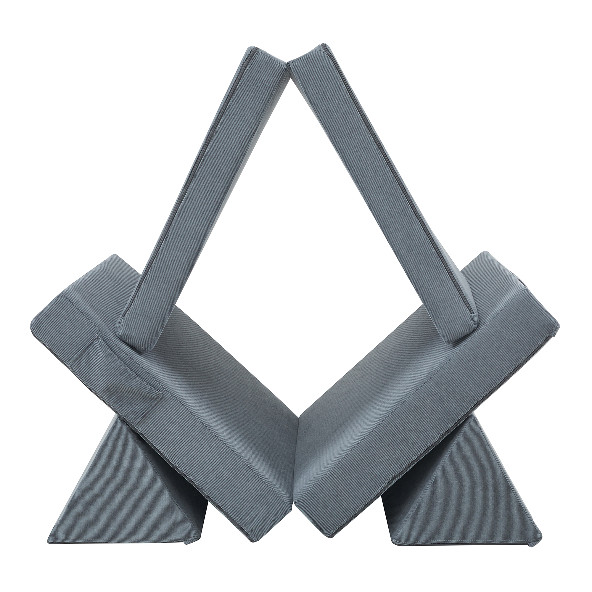 - Bestehend aus Klappmatratze, zwei Polsterblöcken und zwei dreieckigen Rückenlehnen