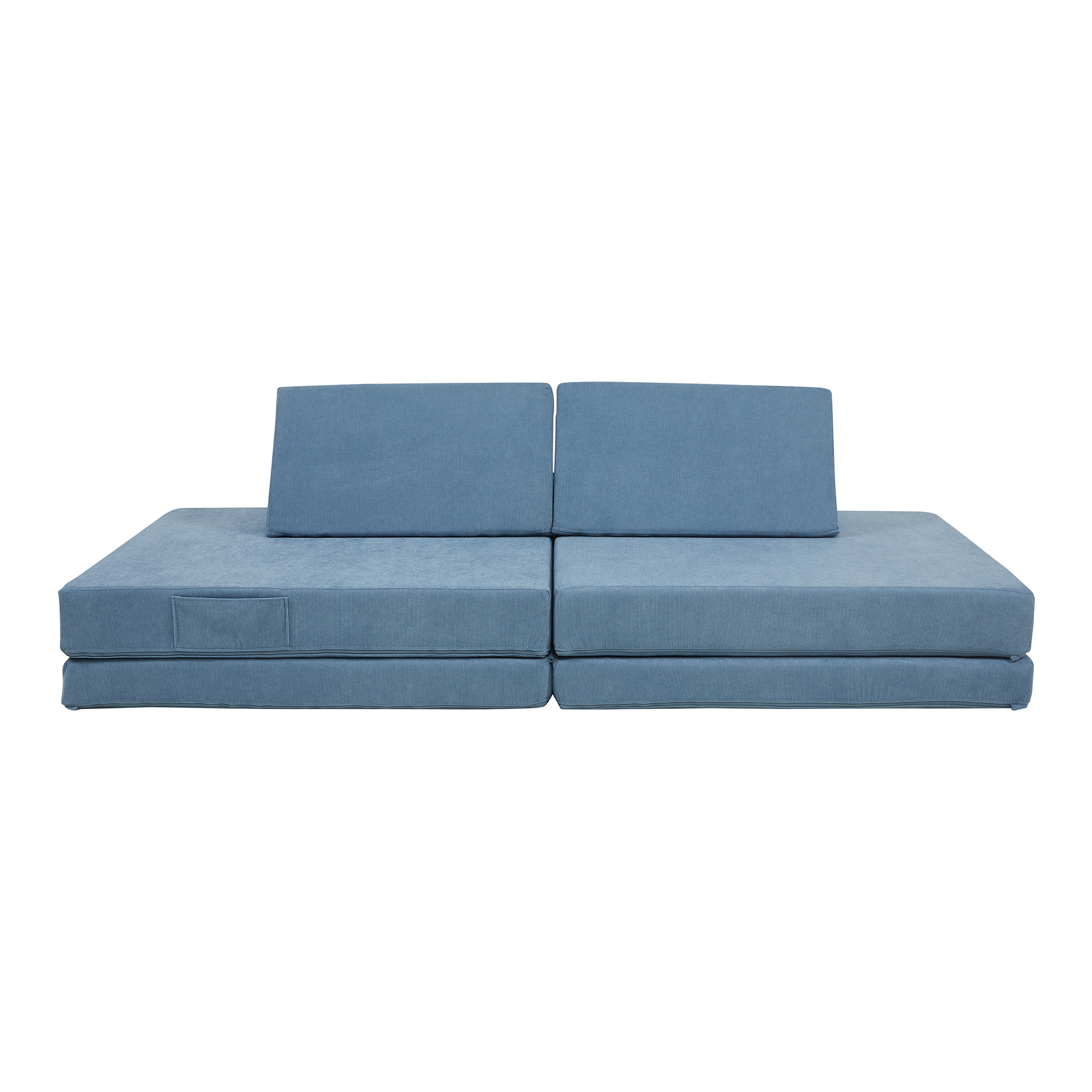 Dieses 5-teilige Spielsofa besteht aus einer Klappmatratze, zwei stabilen Polsterblöcken und zwei dreieckigen Rückenlehnen. Es bietet unendliche Möglichkeiten für kreatives Spielen, gemütliches Lesen und entspanntes Liegen.
