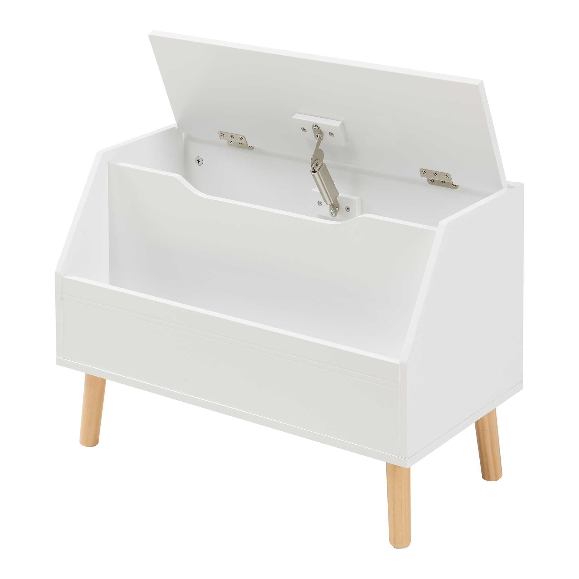 Zusätzlich verfügt die elegante Spielzeugtruhe über ein offenes Ablagefach an der Vorderseite. Es kann ideal zur Aufbewahrung von Büchern, Zeitschriften oder Schulheften dienen.