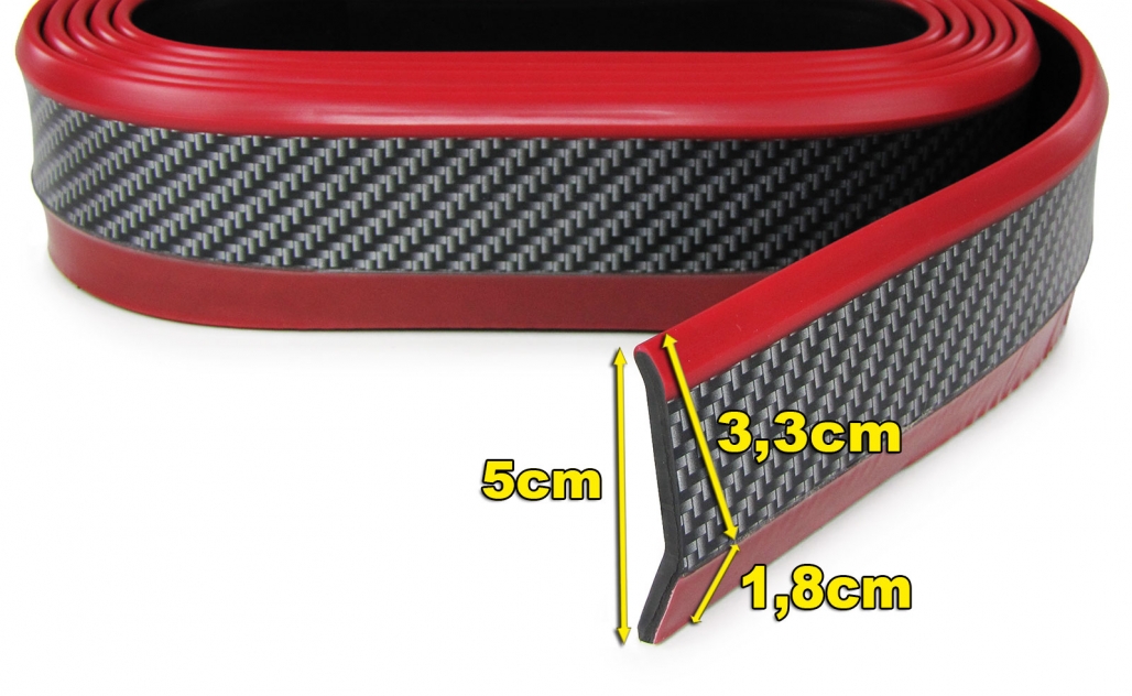 Spoiler frontal universal flexibil aspect carbon roșu 5cm 2.5 metri Performance AutoTuning