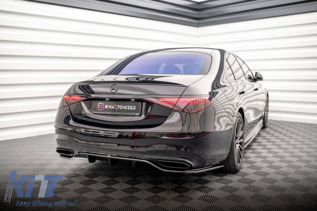 Spoiler Maxton Design potrivit pentru bara de protecție din spate A Design-Line pe Mercedes S-Class W223 după 2020, lac negru Performance AutoTuning