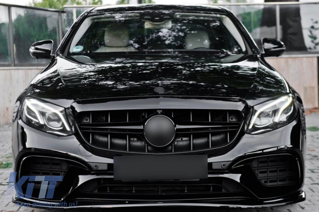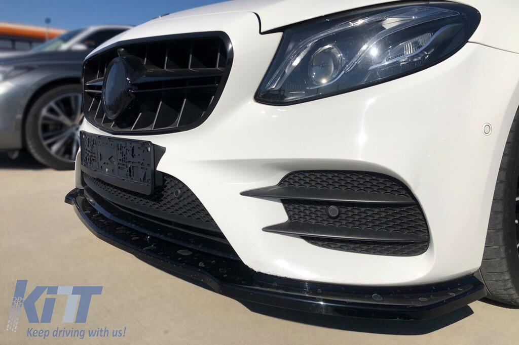 Spoiler Maxton Design potrivit pentru bara de protecție frontală A Design pe Mercedes E-Class, E43 W213 2016-2018, lac negru Performance AutoTuning