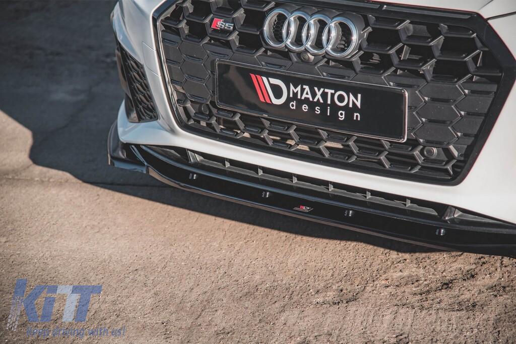 Spoiler Maxton Design versiunea 1 potrivit pentru bara frontală S5, S-Line a Audi A5 F5 după 2019, lac negru Performance AutoTuning