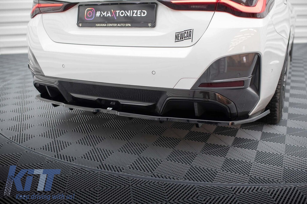 Spoiler Maxton Design versiunea 1 potrivit pentru bara spate a BMW i4 G26 cu pachet M după 2021, lac negru Performance AutoTuning