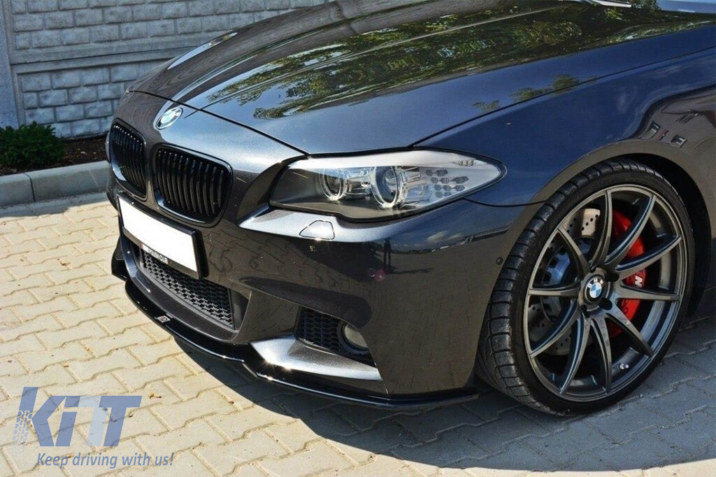 Spoiler Maxton Design versiunea 2 potrivit pentru bara de protecție M Technik frontală pe BMW Seria 5 F10, F11 după 2011, lac negru Performance AutoTuning