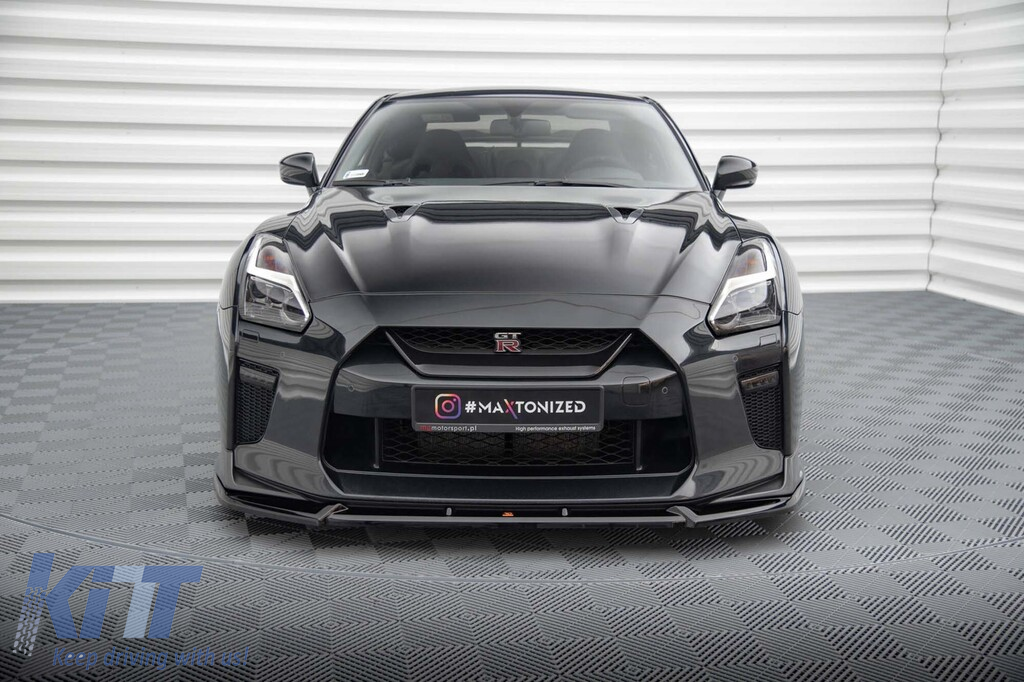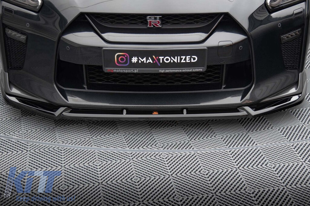 Spoiler Maxton Design versiunea 2 potrivit pentru bara din față a Nissan GTR R35 2016-2022, lac negru Performance AutoTuning