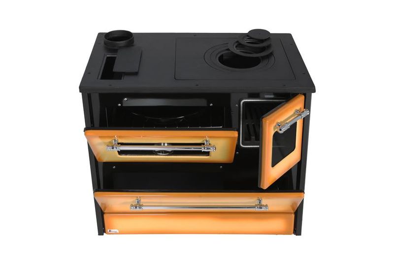 Sporák je vhodný na varenie, pečenie aj vykurovanie. Má jednoduchú obsluhu a úspornú prevádzku. Sporák disponuje varnými platňami, regulátorom prívodu vzduchu a prúdenia tepla, praktickými dvierkami ohniska a dvierkami rúry na pečenie. Varné platne a ohnisko sú vyrobené z liatiny. Praktická rúra na pečenie má dostatočnú šírku, a to 45 cm a na dvierkach sa nachádza praktický teplomer. Vyberateľný rošt v nej môžete vložiť na spodnú a strednú pozíciu. V sporáku sa tiež nachádza veľká časť na odkladanie dreva a nádoba na popolník.