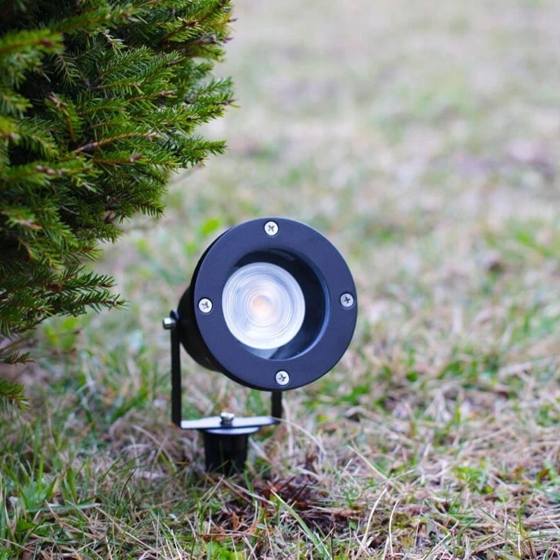 Se montează ușor în sol cu țărușul inclus și permite orientarea fasciculului pentru a evidenția plante, arbori, fațade sau elemente decorative. Compatibil cu becuri cu soclu GU10, pentru a alege temperatura de culoare potrivită (cald/neutru/rece) în funcție de ambient.