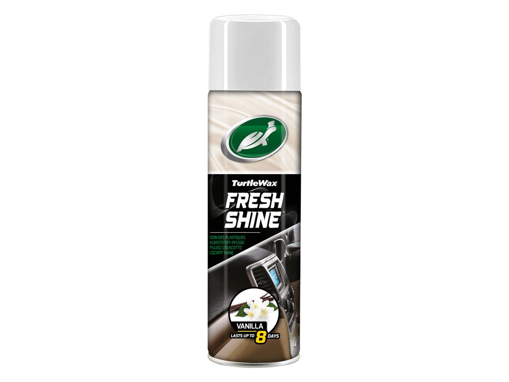 Turtle Wax Fresh Shine Vanilla este un agent de curatare pentru plastic destinat ingrijirii, curatarii, protejarii si infrumusetarii interiorului masinii. Agentul de curatare pentru habitaclu are un miros placut de vanilie si respinge murdaria.