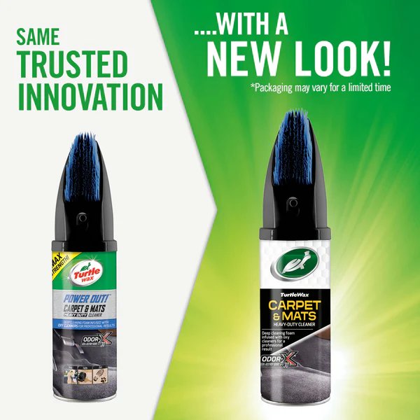 Turtle Wax Power Out Carpets & Mats este un curatator pentru covorasele si mochetele auto care revigoreaza covorasele si mochetele murdare, indepartand petele cu o perie speciala. Acest curatator puternic pentru tapiteria auto formula inovativa Odor X, care elimina mirosurile neplacute.