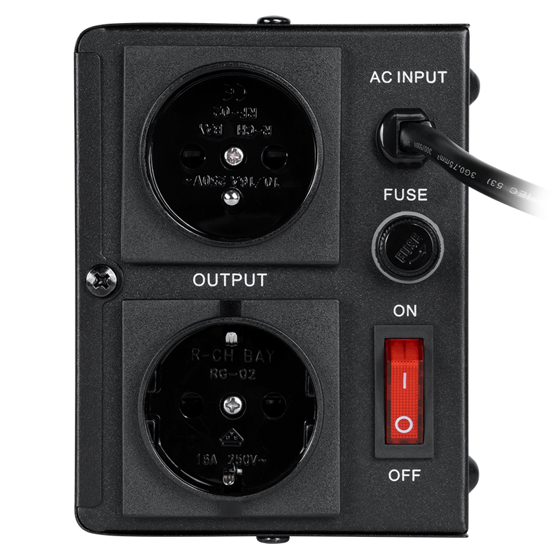 - Conecteaza stabilizatorul la priza de alimentare, apoi conecteaza consumatorii la iesire.