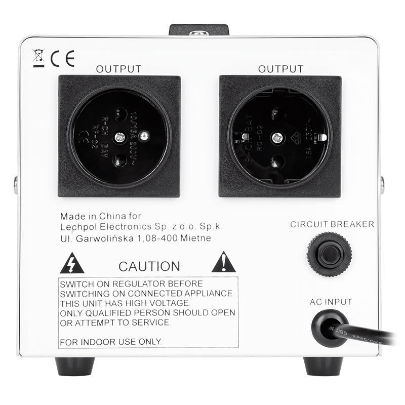 Conectează stabilizatorul la rețeaua de 230V, apoi conectează consumatorul (de exemplu: TV, sistem audio, router, PC, echipamente de birou sau alte electronice cu consum redus). Recomandat pentru aplicații monofazate, în interior, în intervalul de temperatură indicat.