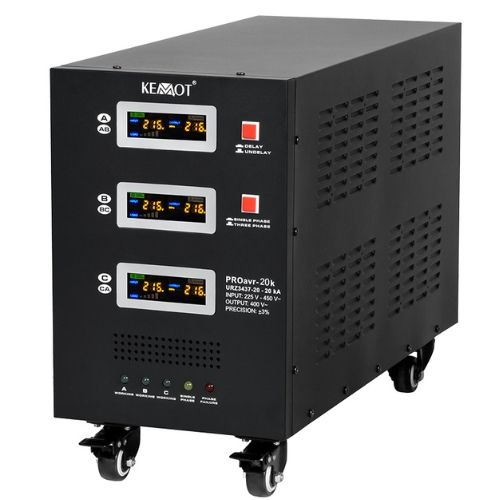 Stabilizatorul de tensiune trifazat 20KVA KEMOT PROAVR-20K este o solutie fiabila pentru protejarea echipamentelor electrice si electronice impotriva fluctuatiilor de tensiune. Cu tehnologie cu servomotor, precizie de stabilizare de ±3% si eficienta ridicata, acest model este potrivit pentru aplicatii industriale, comerciale sau pentru sisteme cu consumatori sensibili.
