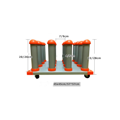 - Carucior mobil cu baza patrata din otel, pentru 16 role (4x4).