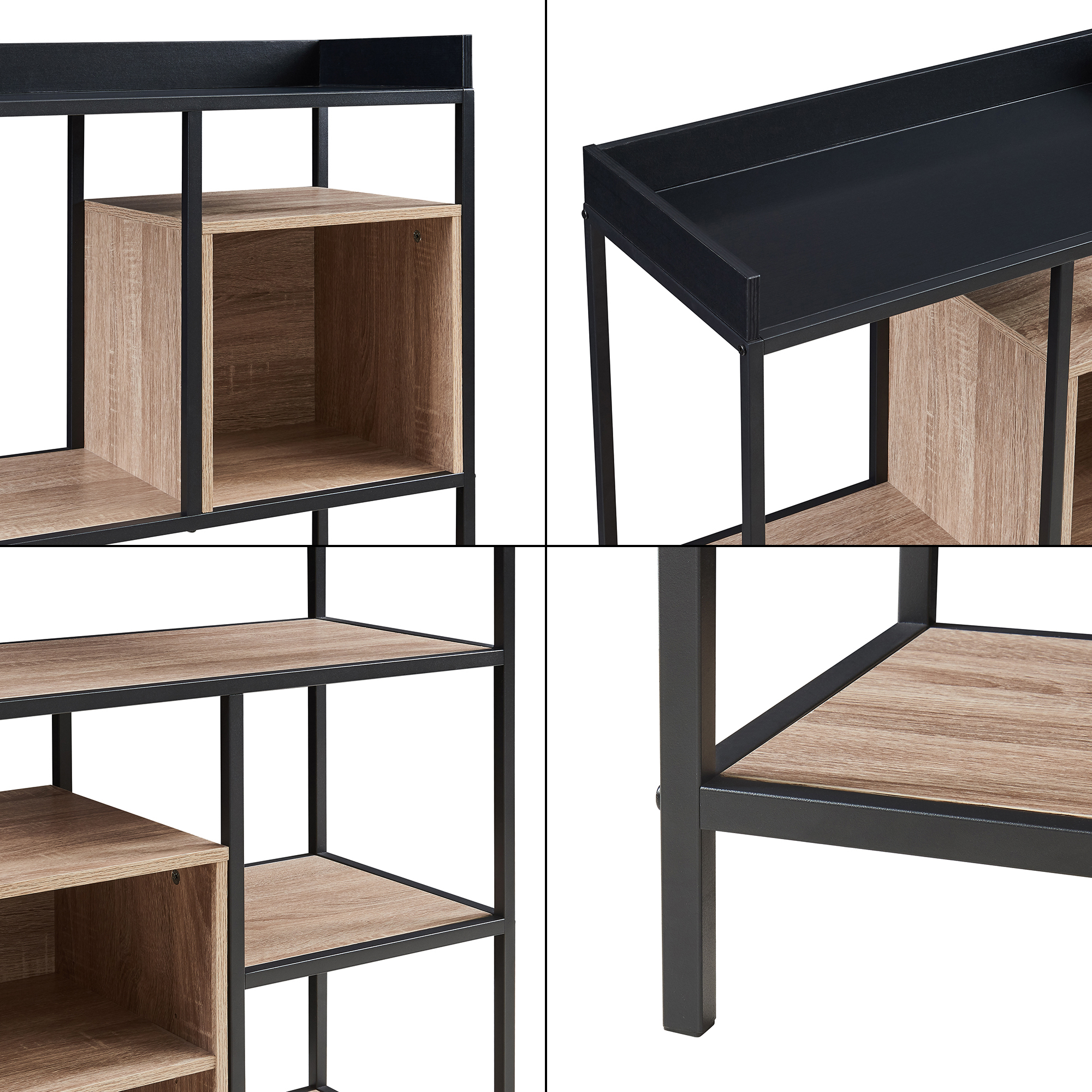 Standregal Belana 137x70x33 cm Schwarz/Eicheoptik [en.casa]
