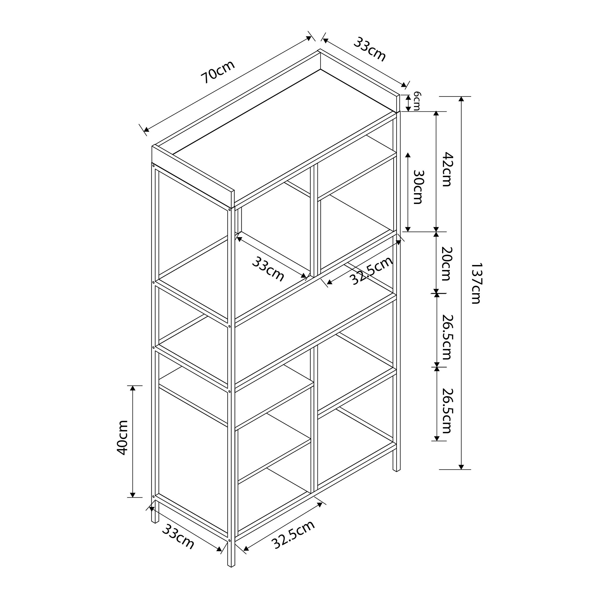 - Gesamt (HxBxT): 137 x 70 x 33 cm