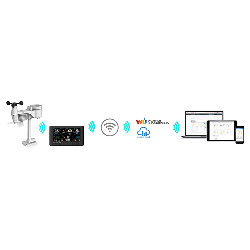 Obții rapid o imagine completă a vremii din curtea ta cu stația meteo profesională WiFi Sencor SWS 12500. Sistemul include senzor 7-în-1 și îți arată pe ecranul color TRUE BLACK valorile esențiale: temperatură, umiditate, vânt, precipitații, UV și intensitatea luminii. În plus, poți publica datele pe platforme precum Weather Underground și Weathercloud, pentru acces online și istoric.