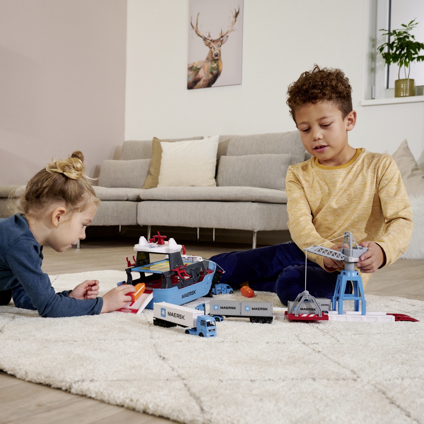 Setul include o navă de marfă Maersk, o stație portuară cu rampă pliabilă, o macara controlabilă manual și un camion MAN TGX cu container de 20 ft. Nava poate fi folosită inclusiv în apă, pentru o experiență de joacă și mai realistă. Funcțiile interactive, precum troliul cu cablu și bărcile de salvare cu mecanism de lansare, stimulează imaginația și dezvoltă coordonarea.