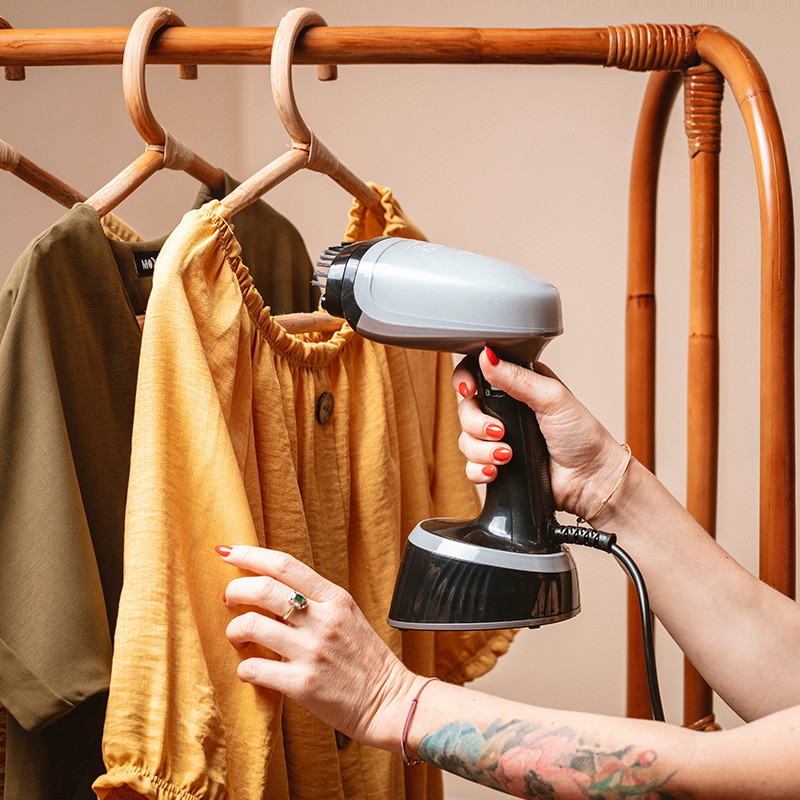 Cu steamerul de haine Camry îți reîmprospătezi rapid ținutele și netezești cutele fără masa de călcat. Jetul de abur puternic ajută la eliminarea mirosurilor neplăcute (fum, mâncare) și la îngrijirea delicată a materialelor.