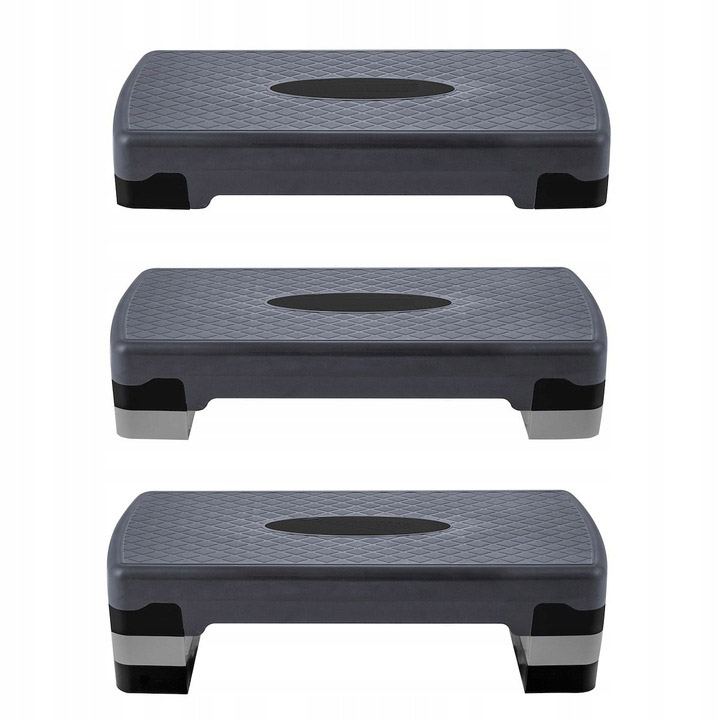 Stepper aerobic fitness, ajustabil 3 nivele, sarcina 350 kg, 28x68x20cm, negru si gri Household NewTrend