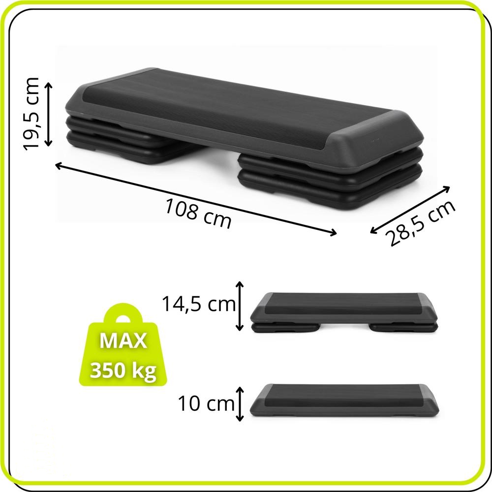 Stepper aerobic fitness reglabil cu 3 niveluri, 350 kg, 108 cm, negru-gri