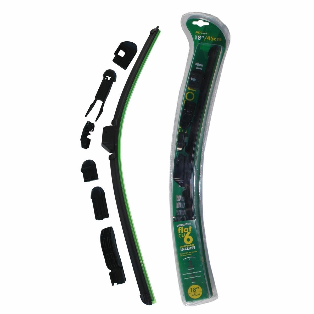 Ștergător auto flat RoGroup universal, 18 inch / 45 cm, adaptor inclus