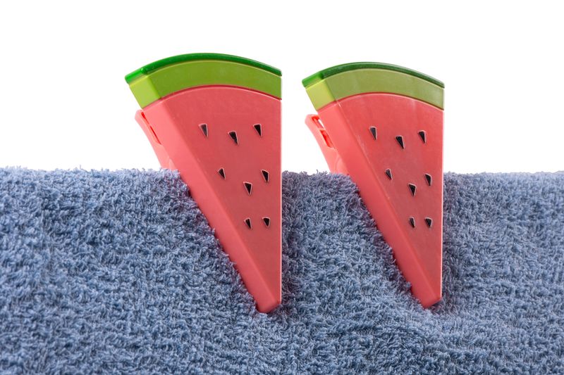 Štipce na plážové osušky slúžia na pripevnenie osušky k lehátku. Sú vyrobené z kvalitného vysoko odolného termoplastu ( ABS). Trendový letný dizajn pre potešenie oka v tvare melóna, veľkosť 12x9x8 cm. Balenie obsahuje 2 kusy.