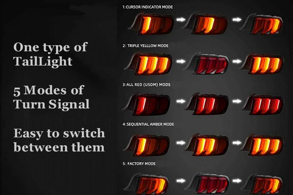 Stopuri LED Culoare: Rosu Pozitie: LED Frana: LED Semnalizare: LED dinamic secvential *5 moduri diferite de a configura semnalul de viraj