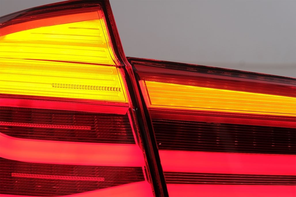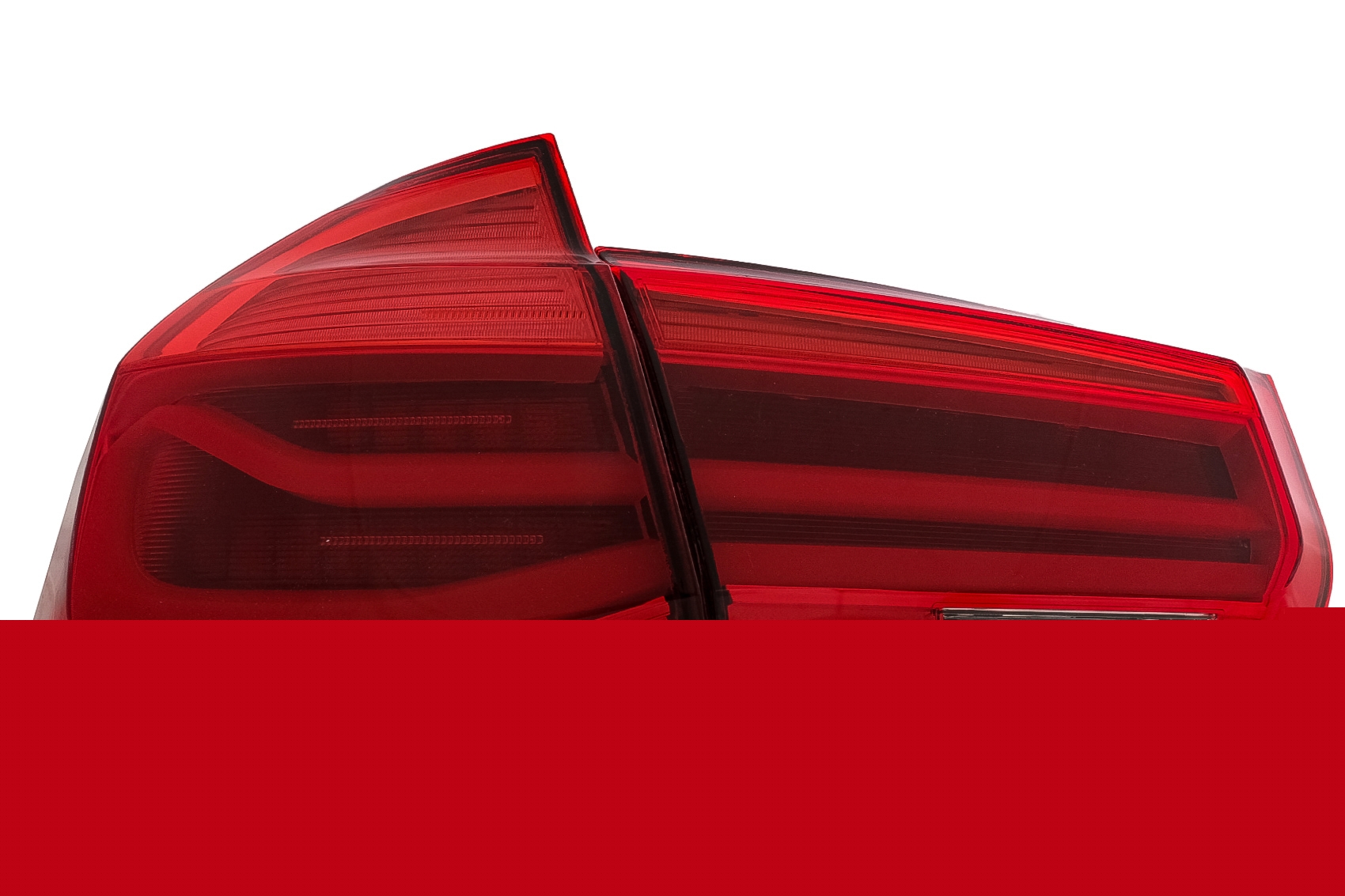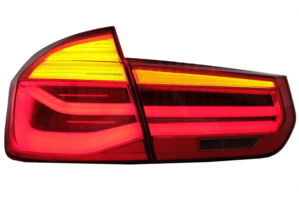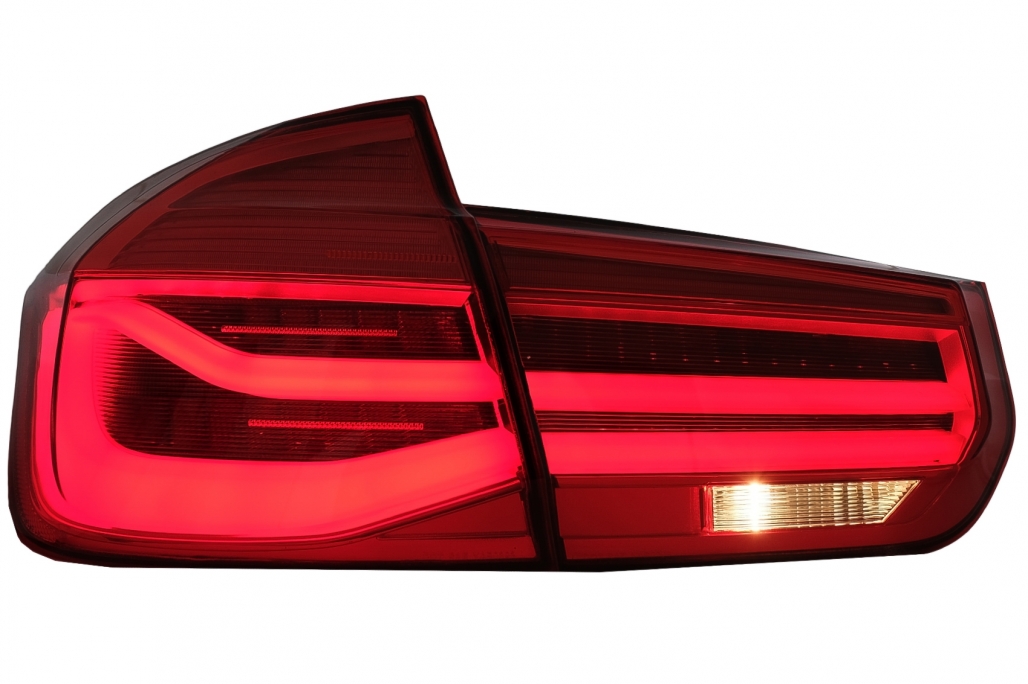 Set de stopuri LED pentru BMW Seria 3 F30/F31/F35/F80, cu design LCI, finisaj rosu clar si semnal dinamic secvential. Ofera un upgrade estetic modern, iluminare clara pentru pozitie si frana si un aspect premium, perfect pentru inlocuirea stopurilor standard.