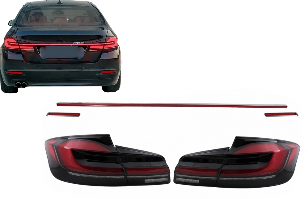 Stopuri LED compatibil cu BMW Seria 5 F10 (2011-2017) Rosu Negru cu Semnal Dinamic LCI G30 Design