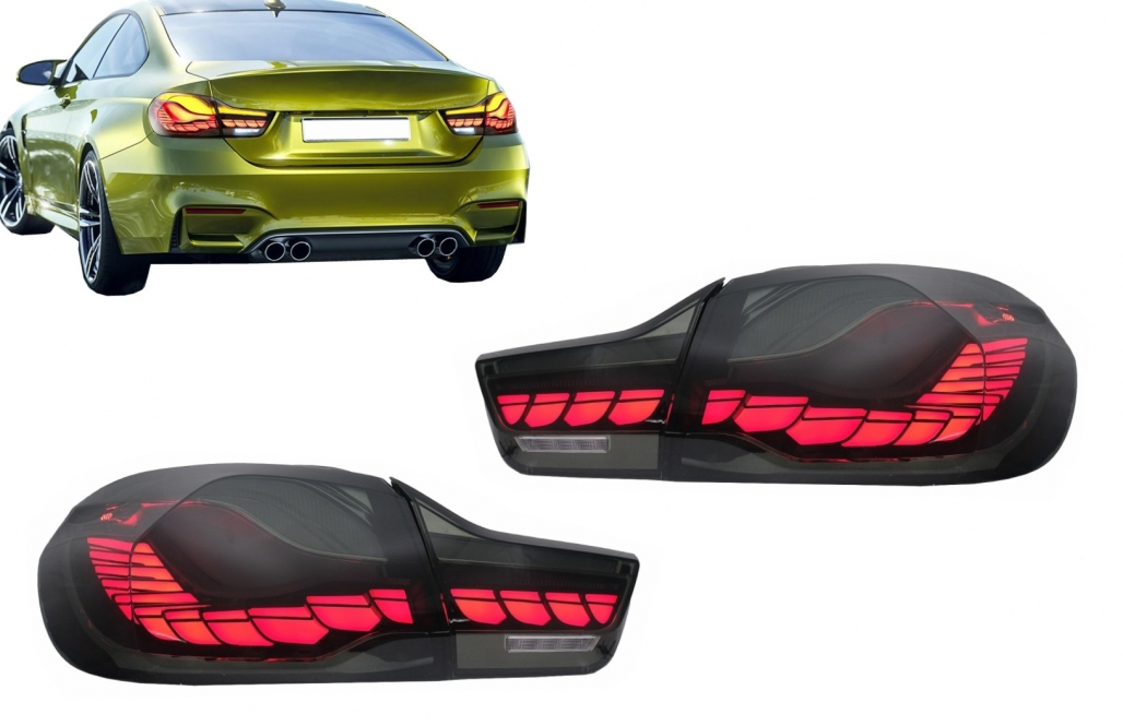 Stopuri OLED BMW Seria 4 F32 F33 F36 M4 F82 F83 (2013-03.2019) Rosu Fumuriu cu Semnal Dinamic Secvential