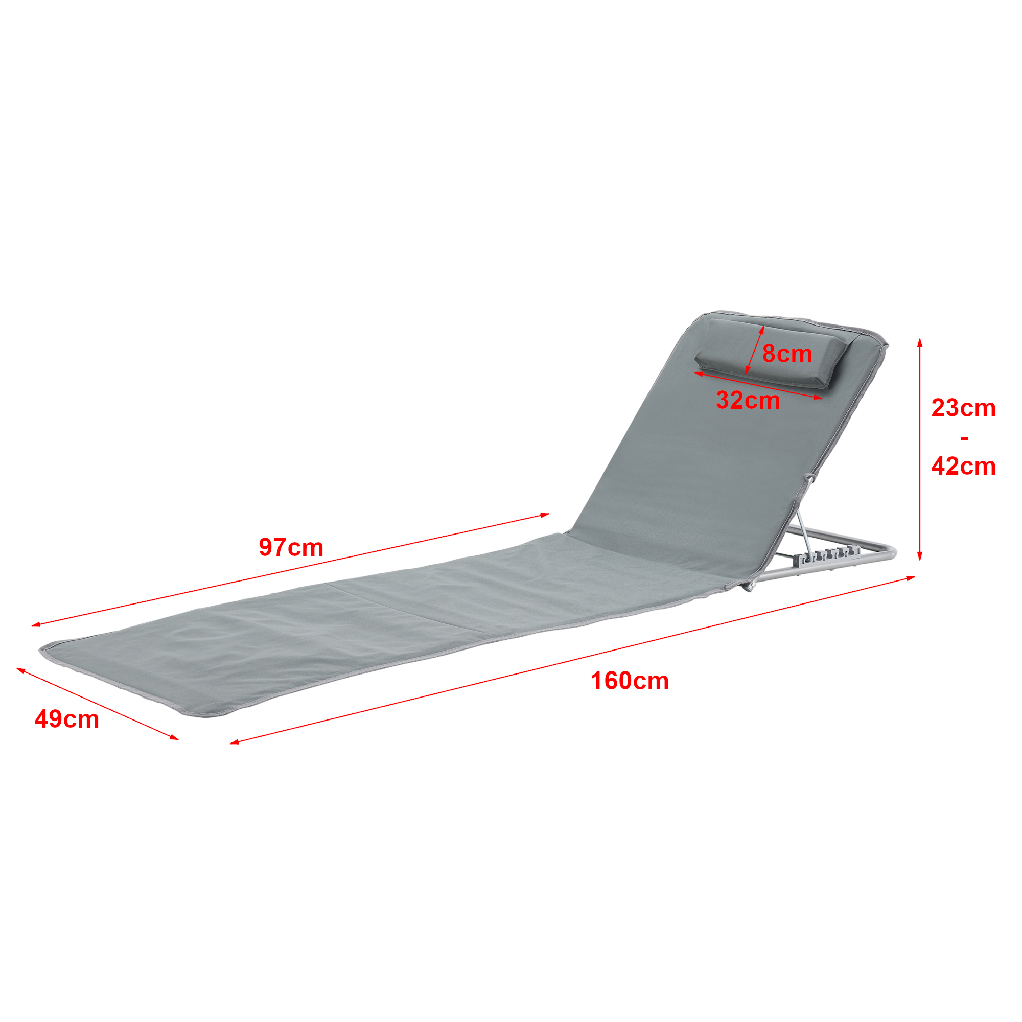 - Höhe (je nach Position der verstellbaren Rückenlehne): 23 - 42 cm