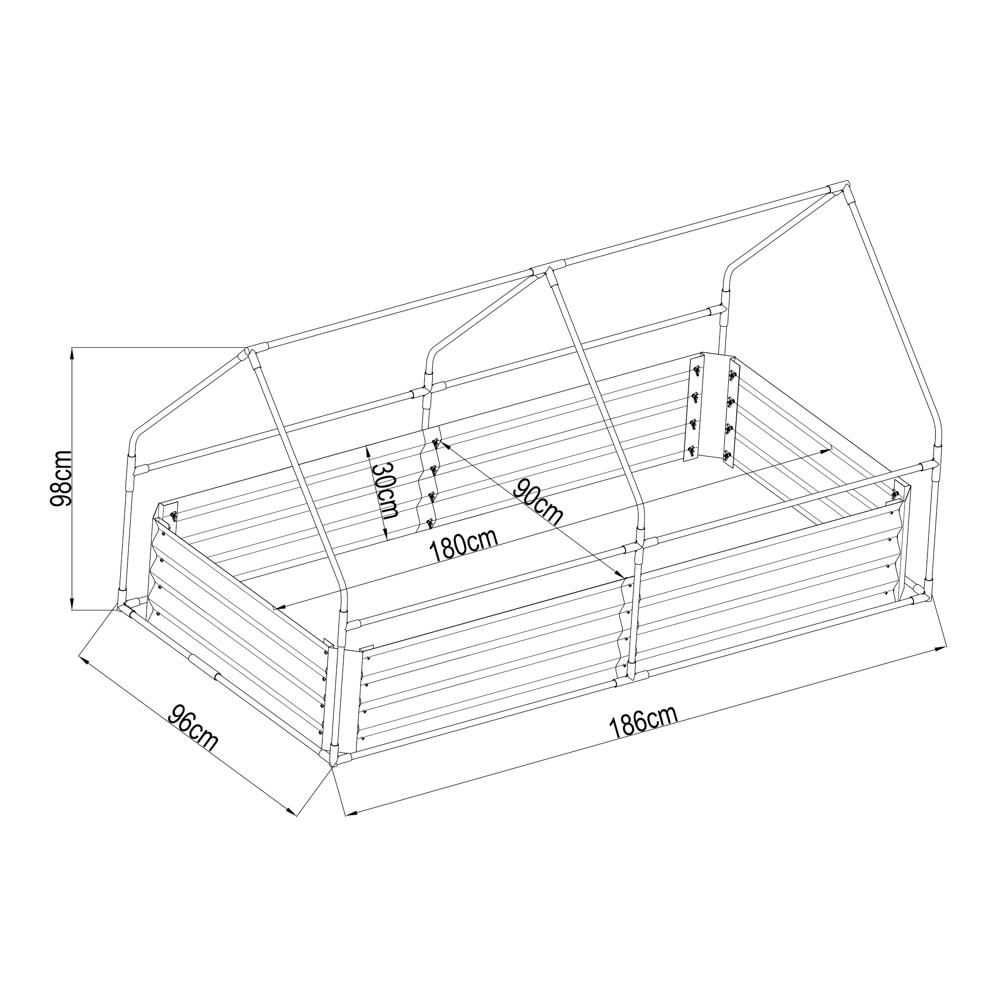 - Dimensiuni strat înălțat: 180 x 90 x 30 cm